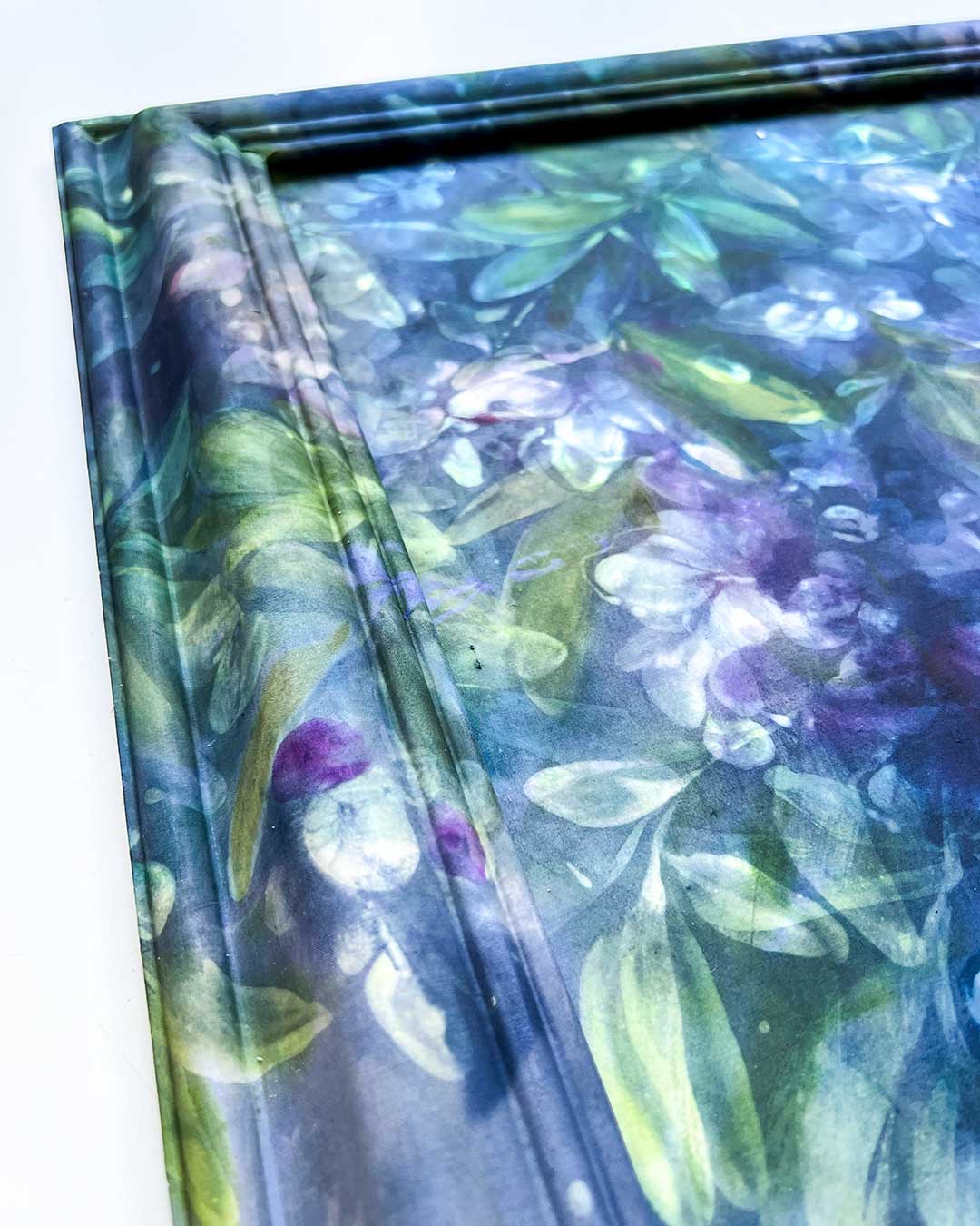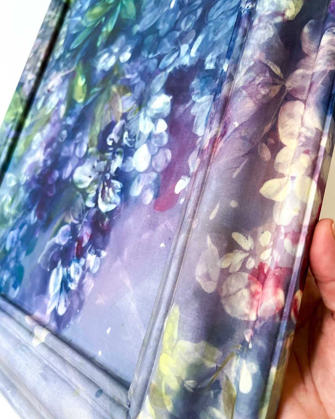 The silk wraps seamlessly around the edges, offering a clean, elegant finish, and the piece arrives ready to hang. No additional framing is needed.