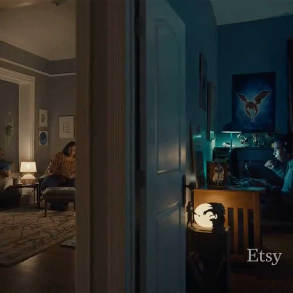 Art prop (Waxing Moon) in an Etsy commercial during running over 25 networks -- such as HGTV, TLC, Bravo, E!, Lifetime, ABC, A&E, OWN.