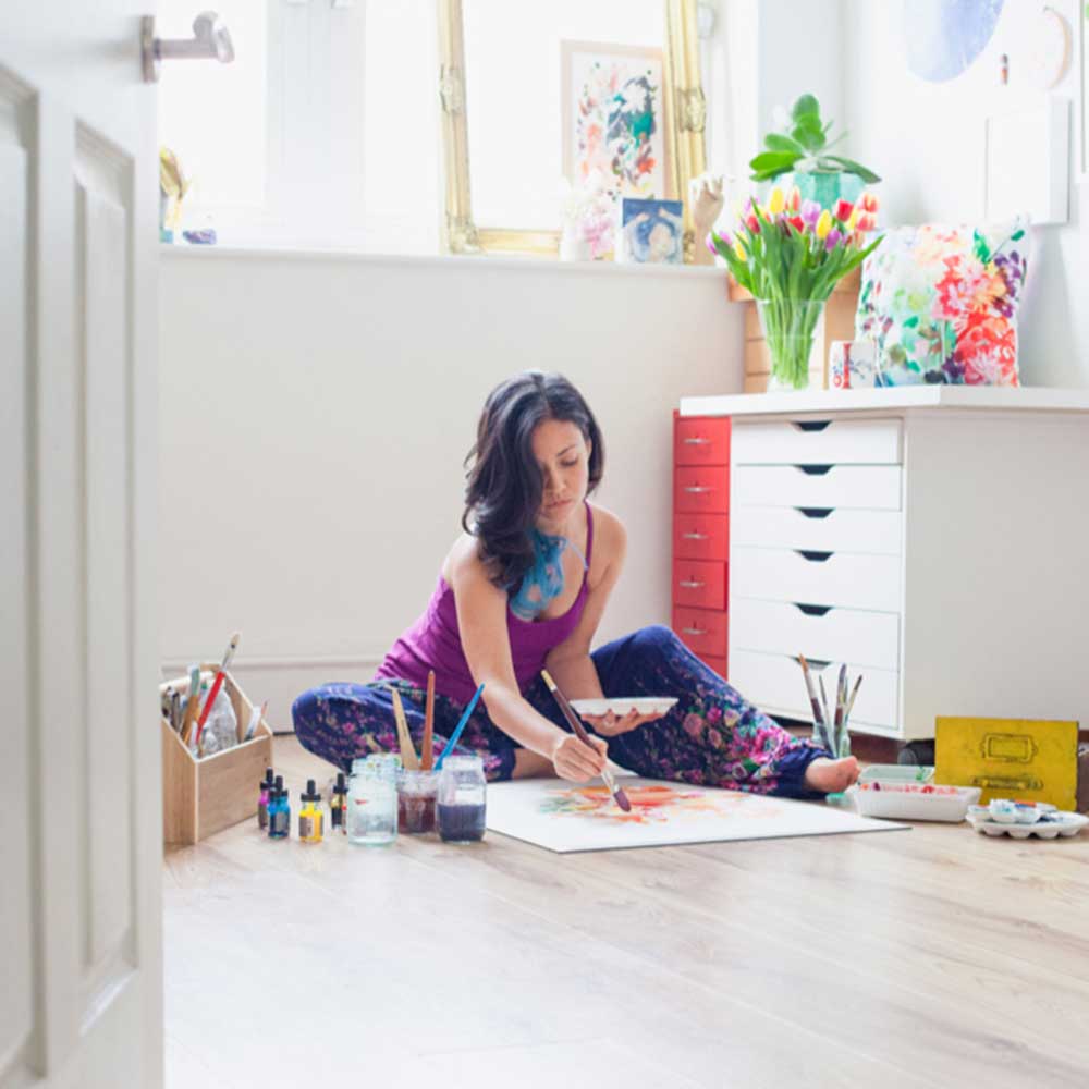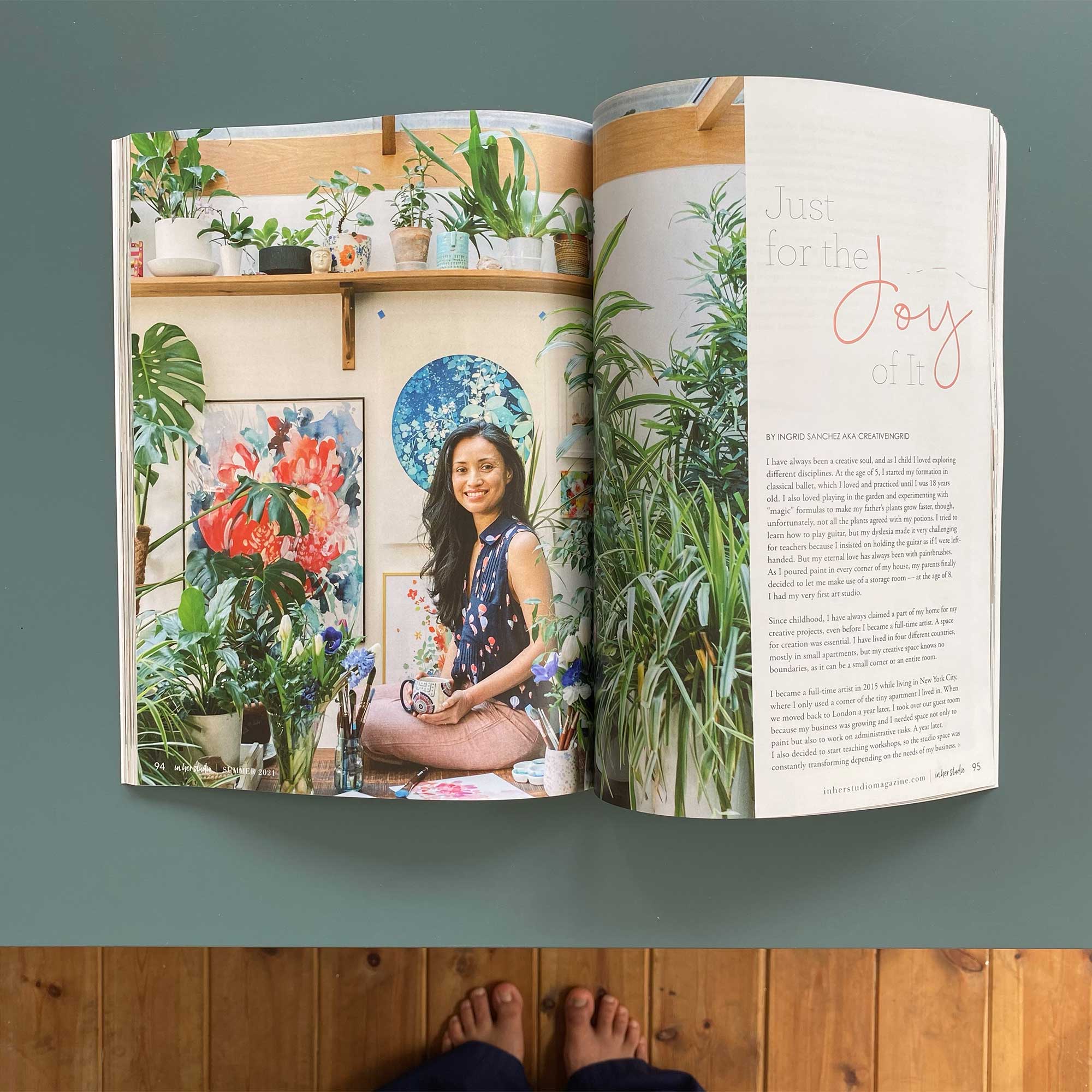 Inside the Summer 2021 Issue:- Artist Ingrid Sanchez, AKA CreativeIngrid shares with us thoughtful advice and gives us a tour of her beautiful bright studio in London.