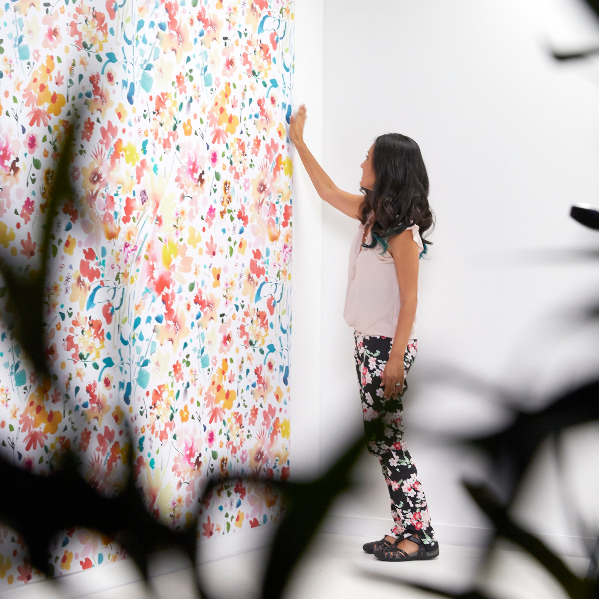Artist Ingrid Sanchez transforms a white room with a watercolour feature wall.