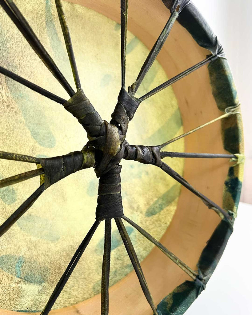 Moonstera is a 12” shamanic drum, hand-crafted and hand-painted by artist Ingrid Sanchez. Inspired by the lush, vibrant energy of the Monstera leaf, this drum embodies growth, vitality, and the unfolding patterns of life. Its spirit invites abundance, renewal, and connection to the natural world, making it a perfect companion for ceremony, meditation, and journeying.